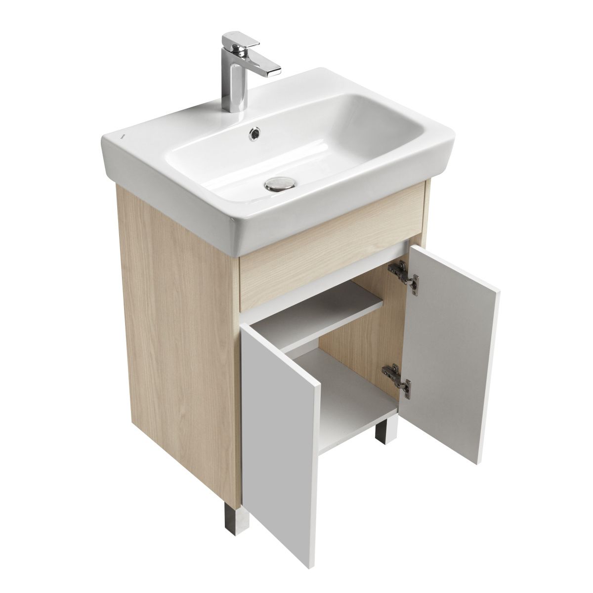 Набор: Тумба под умывальник Верди 60 Н Белый/Ясень + умывальник Нео 60