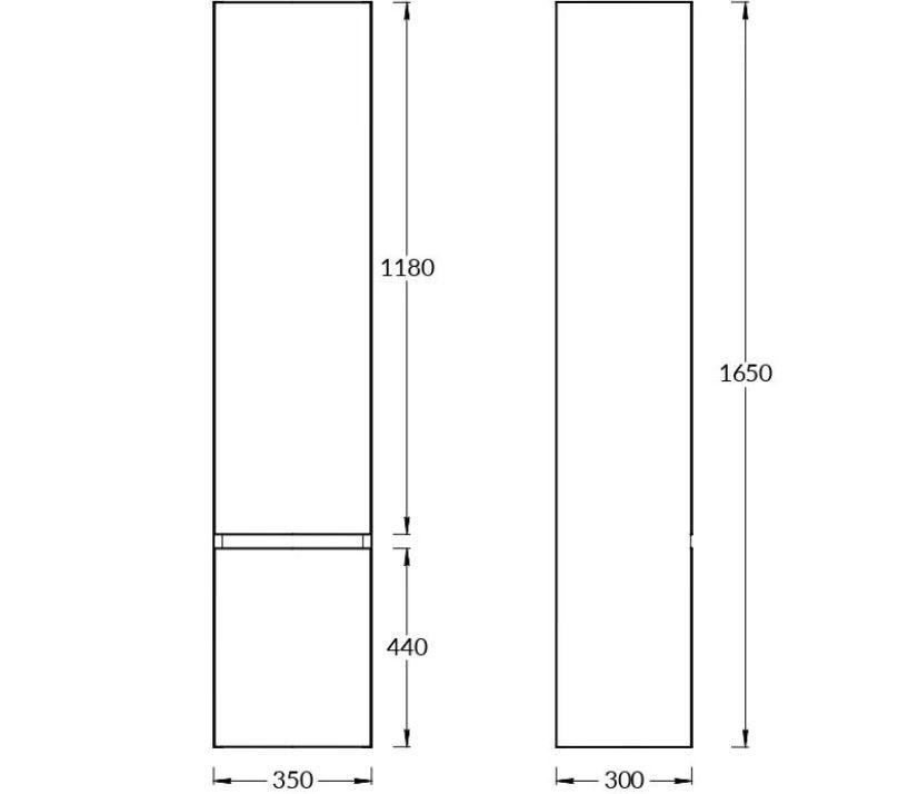 Пенал подвесной CUBO 165 см правый, цвет лимо матовый