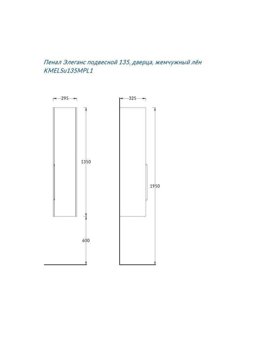 Пенал подвесной Элеганс 135 см, цвет пудровая глина