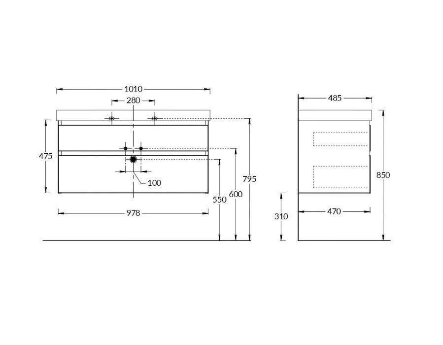 Тумба подвесная CUBO 100 см, цвет мальва матовый