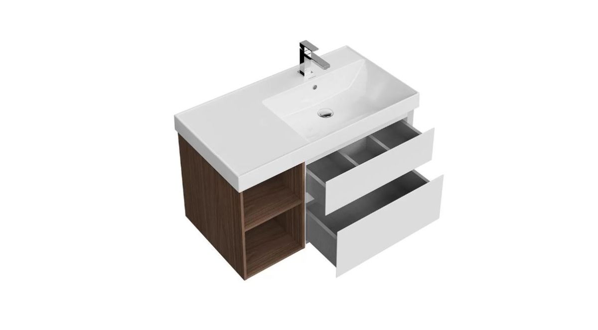 Тумба подвесная CUBO 90 см правая, цвет белый матовый-структурный орех