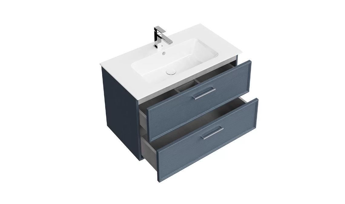 Тумба подвесная PIANO Classic 85 см, 2 ящика, ясень синий матовый