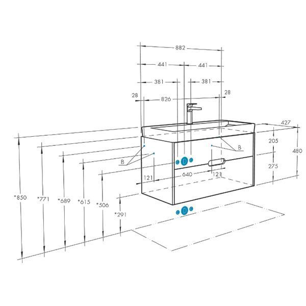Тумба подвесная Оливия Грей/Дуб Ойстер 90 под умывальник