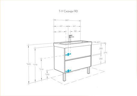 Тумба подвесная Сканди 90 Белый/Дуб Рустикальный под умывальник Адриана