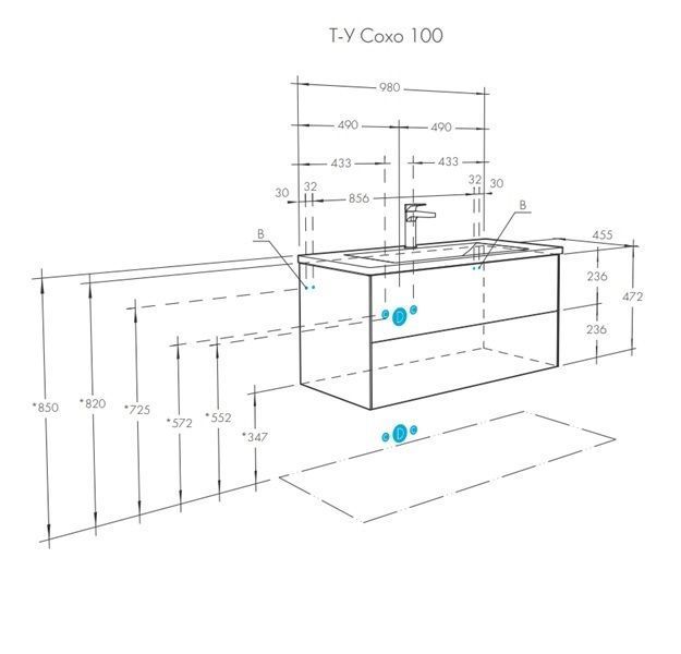Тумба подвесная Сохо Слэйт/Галька серая 100 под умывальник