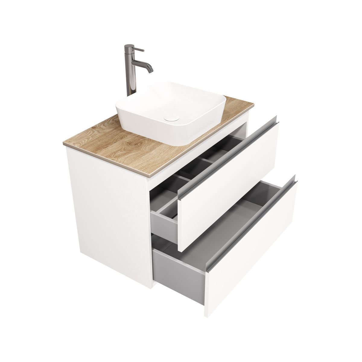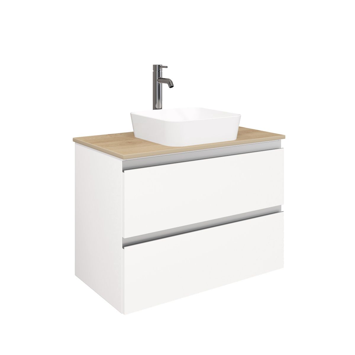Тумба подвесная ELECTRA 80 со столешницей, УЛЬТРА белый глянец/дуб Каселла, LE-WCABtop-80-101-333