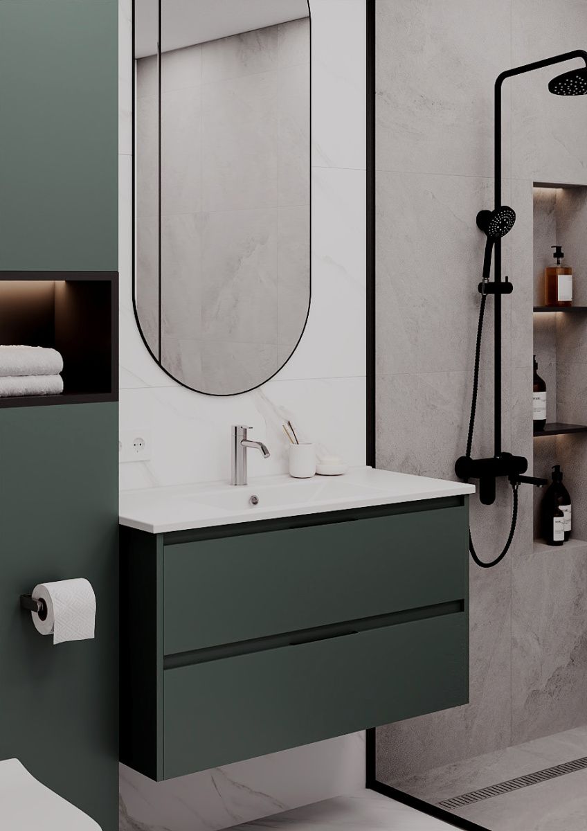 Тумба подвесная NORMA 80 под умыв-к Creavit SU 80, олива нордик матовый, LNO-WCAB-80-415