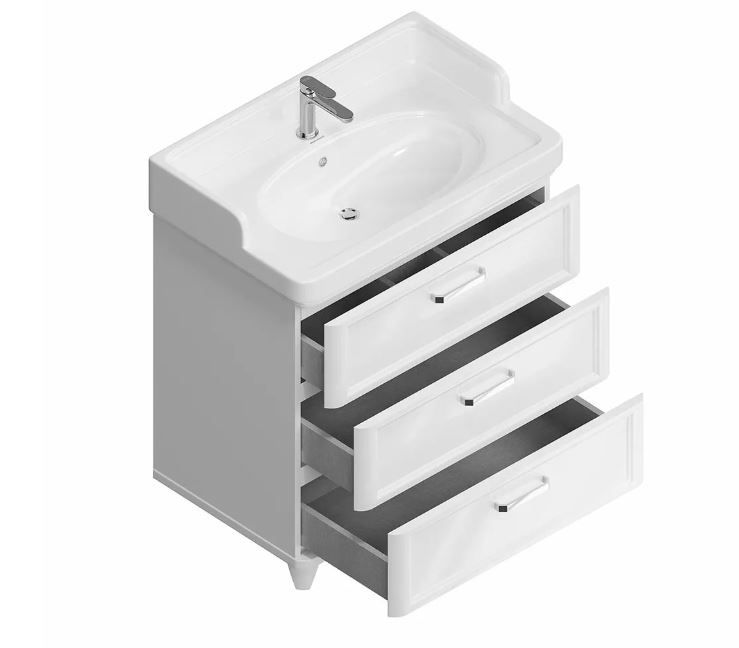 Тумба напольная POMPEI 80, 3 ящика, белая глянцевая