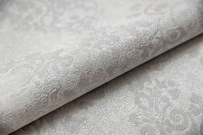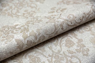 Деликатная текстура этих обоев напоминает ткань с вышитым на ней кружевом. Особенно четко классический орнамент выражен на мотиве. Для мотива и фона использованы нежные цвета, отлично дополняющие флористику в сюжете узора.