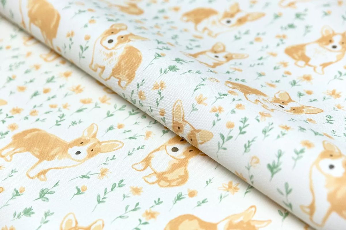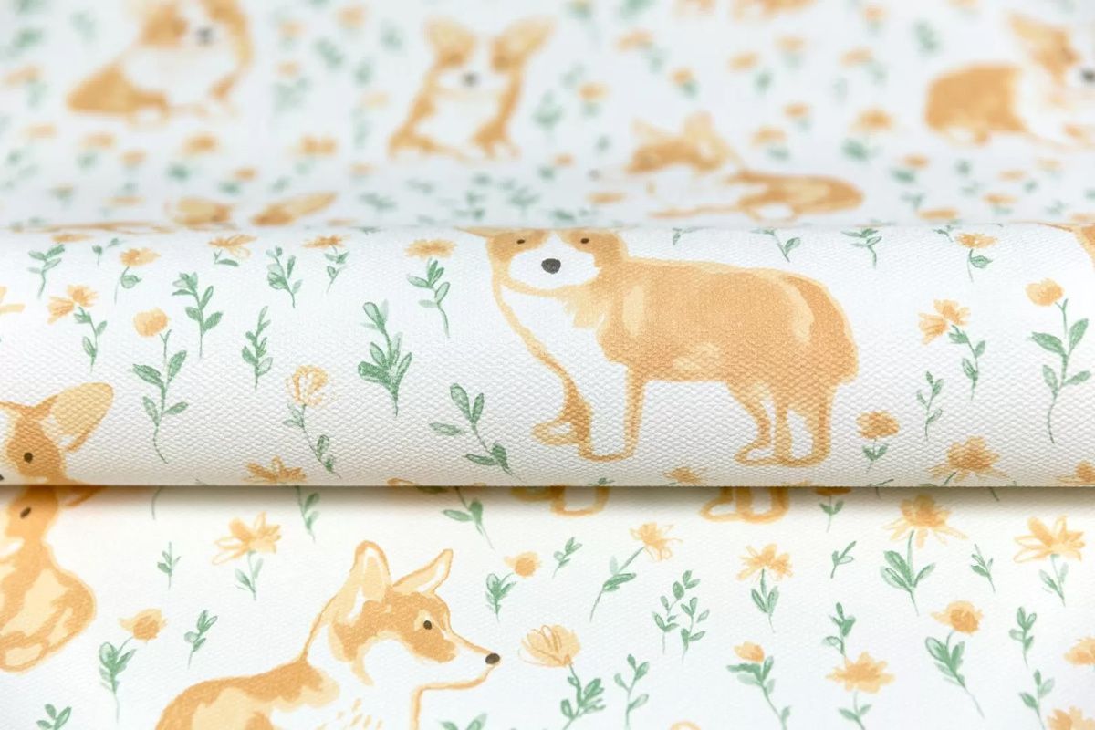 Обои виниловые Уик-Энд мотив желто-зеленый корги KM7801