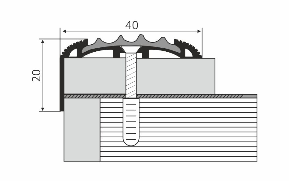 Профиль алюминиевый для ступеней серебро со вставкой ПВХ черный ПУ 71.2700.01лч