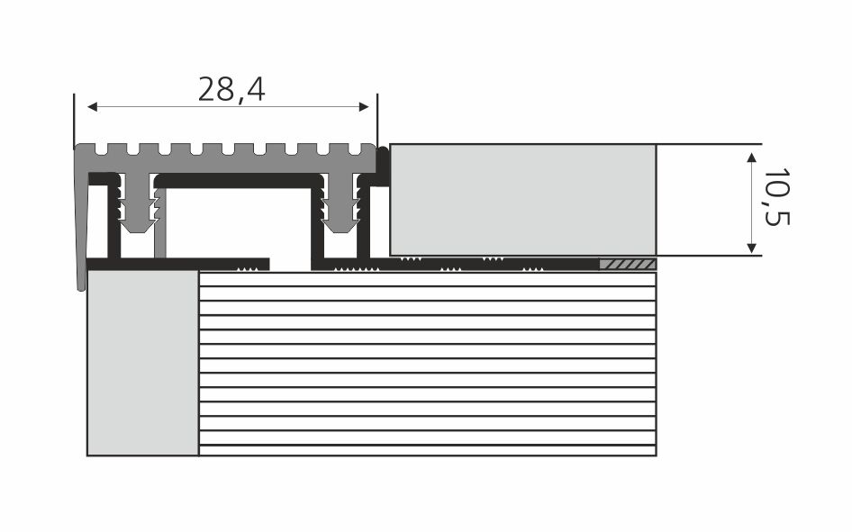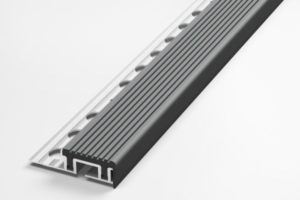Профиль алюминиевый для ступеней серебро со вставкой ПВХ серый ПУ 09-1.2500.414