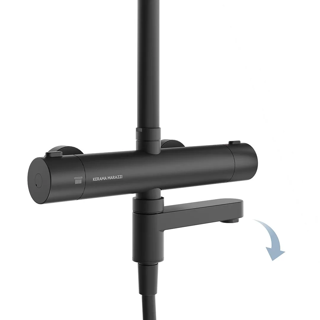 Душевая колонна FONTE на 3 потока с изливом, термостатом, черный матовый FO.302.KM.BLK.M
