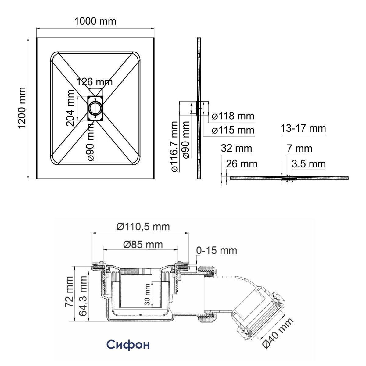 Комплектация душевого поддона