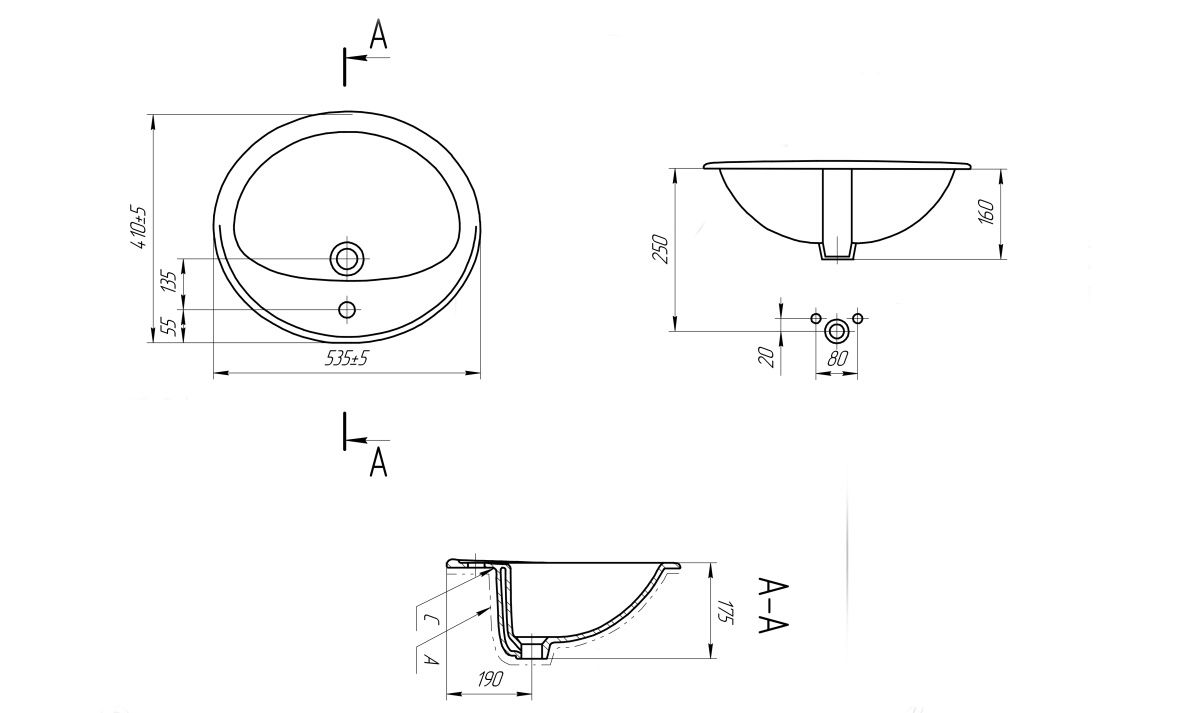 Умывальник Calla 54 встраиваемый овальный