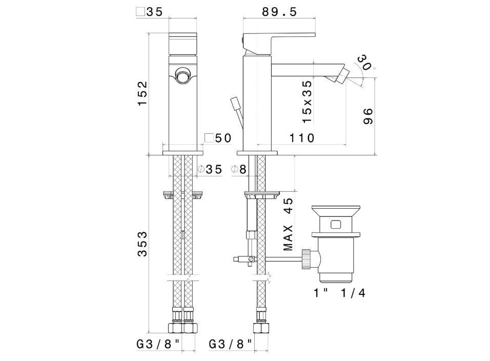 Смеситель для биде FUTURA однорычажный с донным клапаном, хром 66425KM.21.018