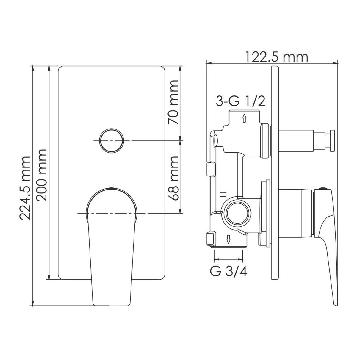 Работает при нулевом давлении. Для переключения на душ или излив необходимо повернуть переключатель в любую сторону на 90°. Керамический картридж 35 мм
