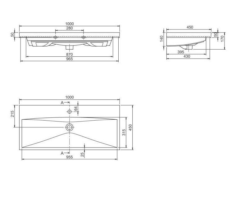 Умывальник Elite 100х45 мебельный/подвесной без крепления, белый, VB032A02U00