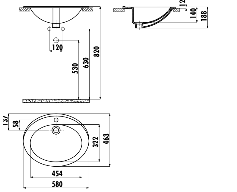 Умывальник TP 46х58 овальный врезной на столешницу