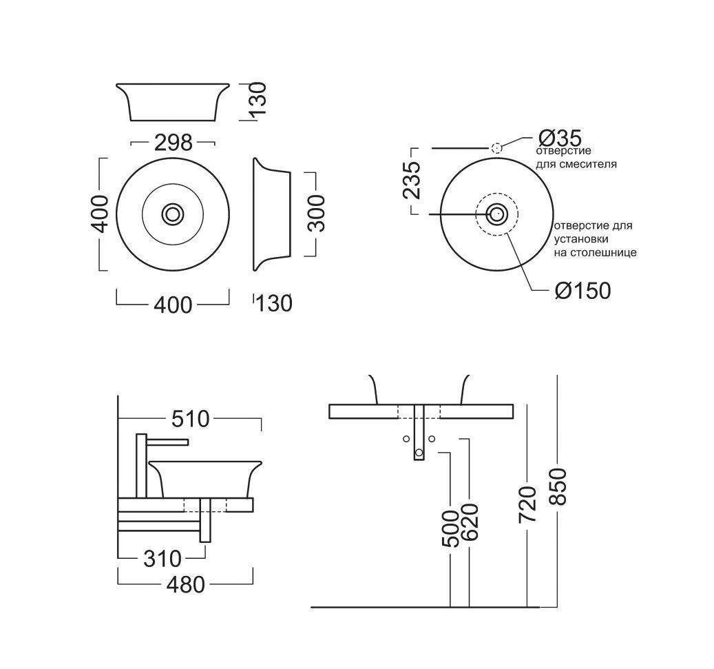 Умывальник Canaletto 40х40 накладной белый