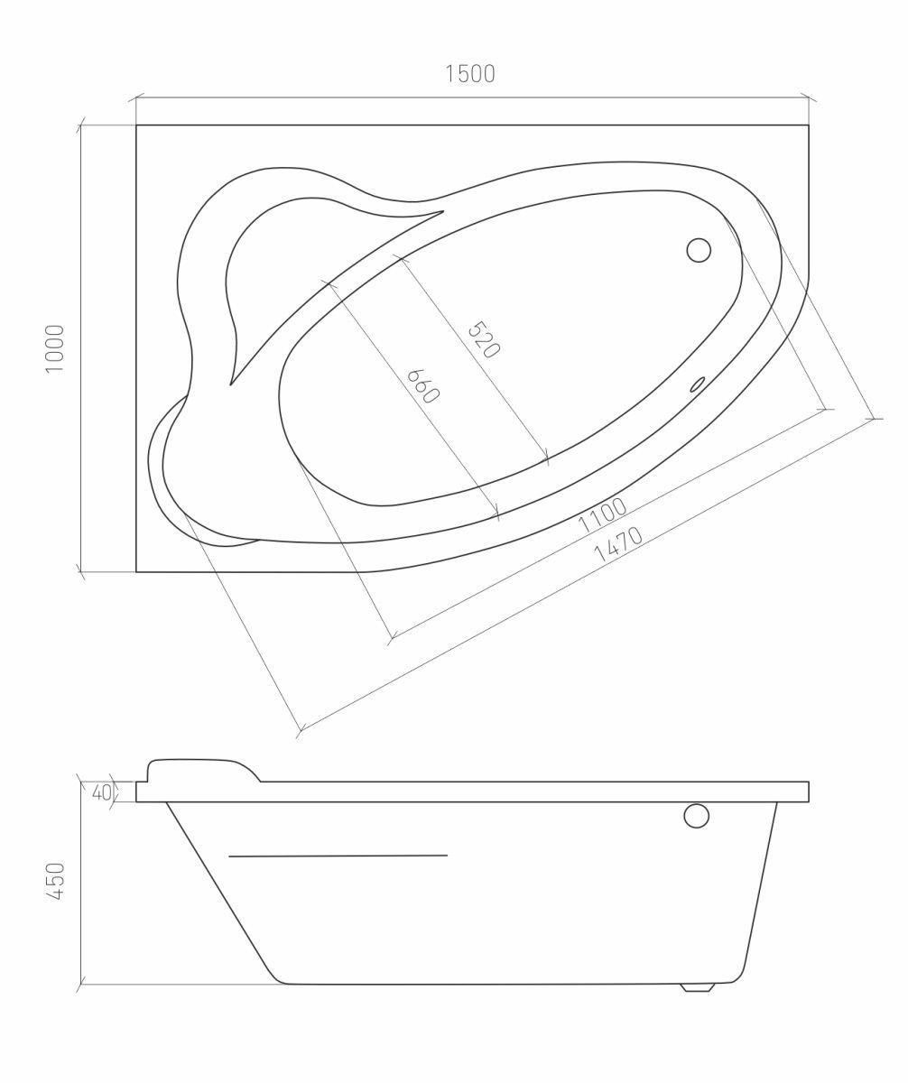 Ванна акриловая ROSA 150*100 см левая с ножками + панель для ванны