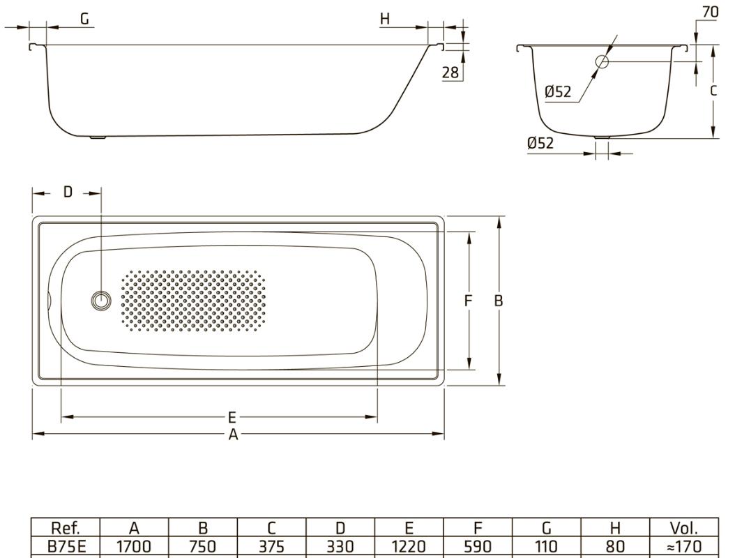 Ванна стальная BLB Europa SG 170*75 см