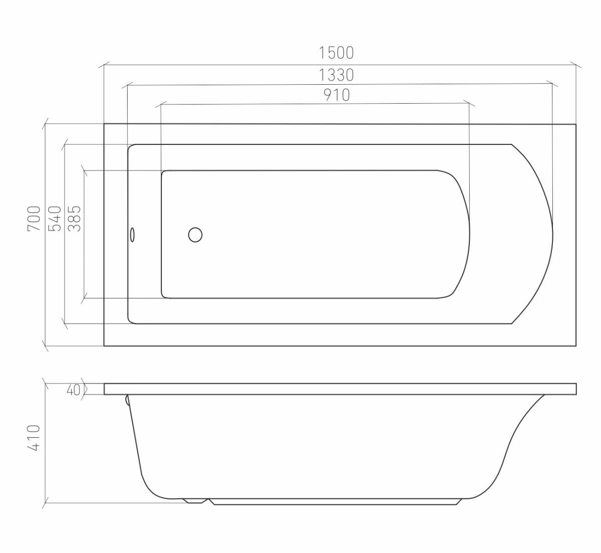 Ванна акриловая Aventura 150х70 см с ножками