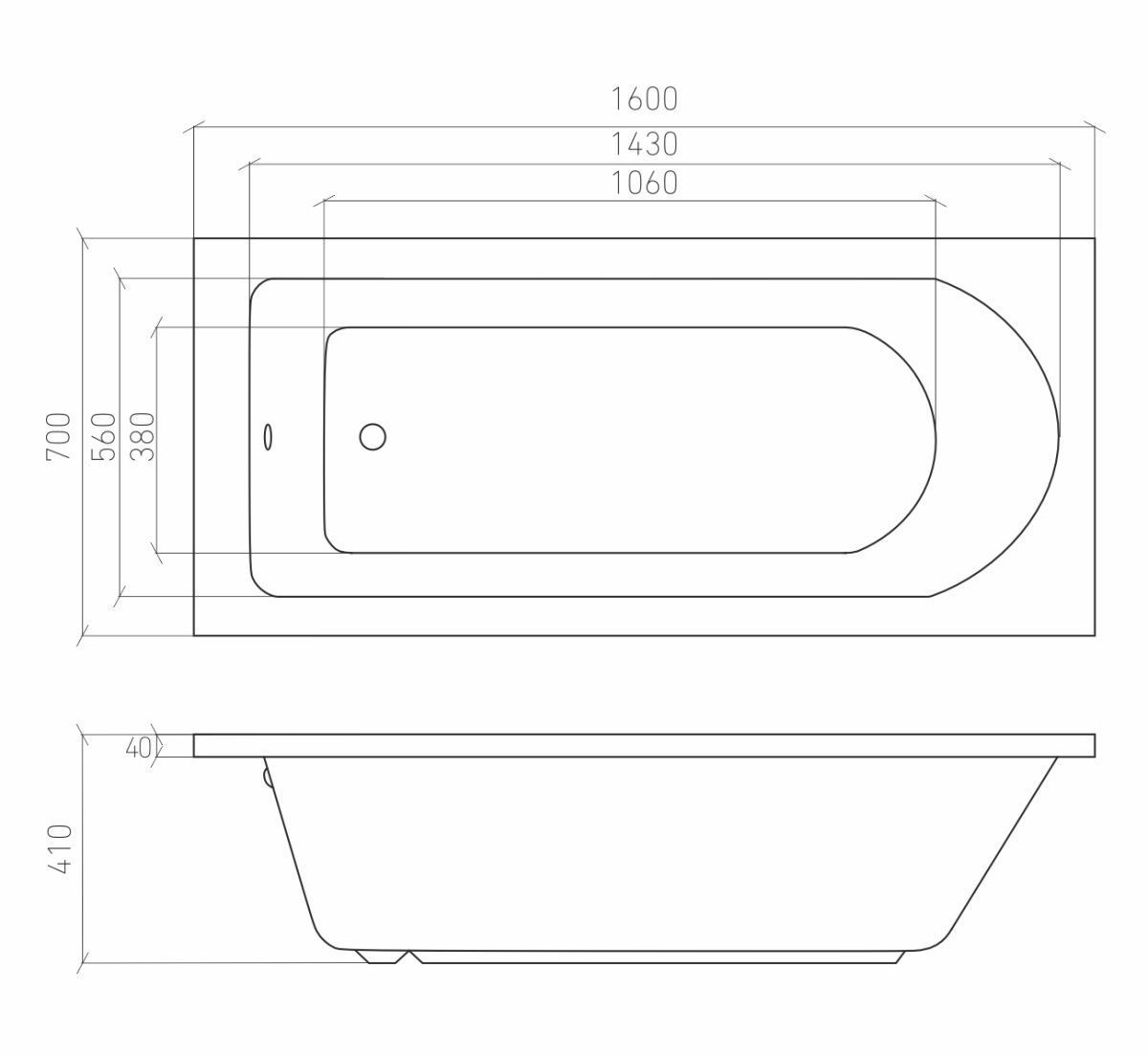 Ванна акриловая Elara 160х70 см с ножками