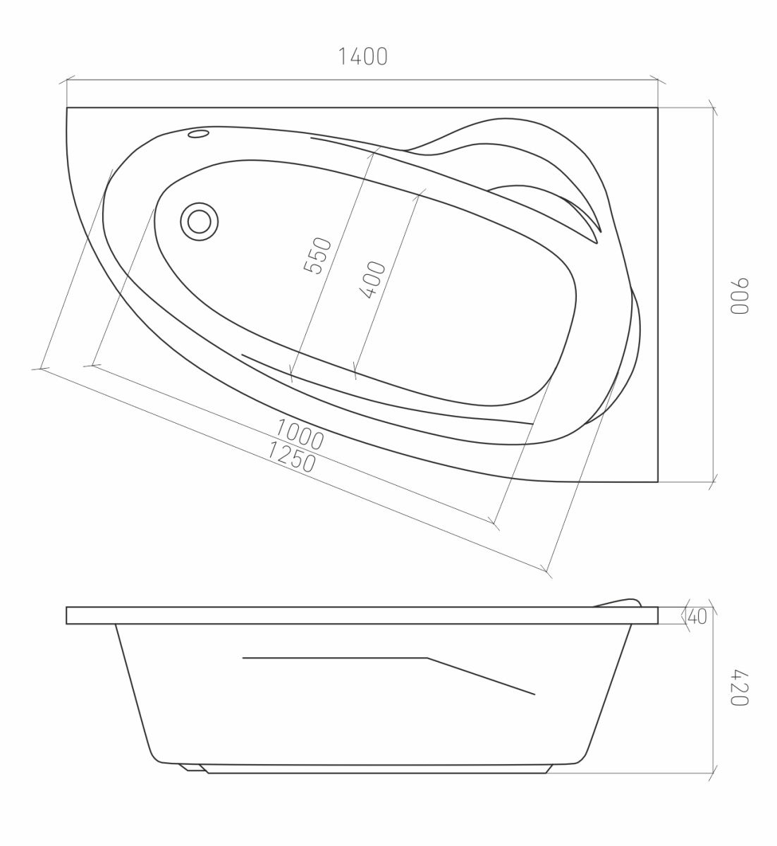 Ванна акриловая Emilia 140х90 правая с ножками