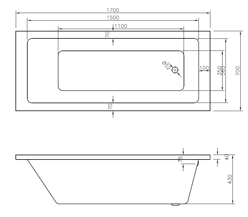Ванна акриловая Saga 170х70 см с ножками