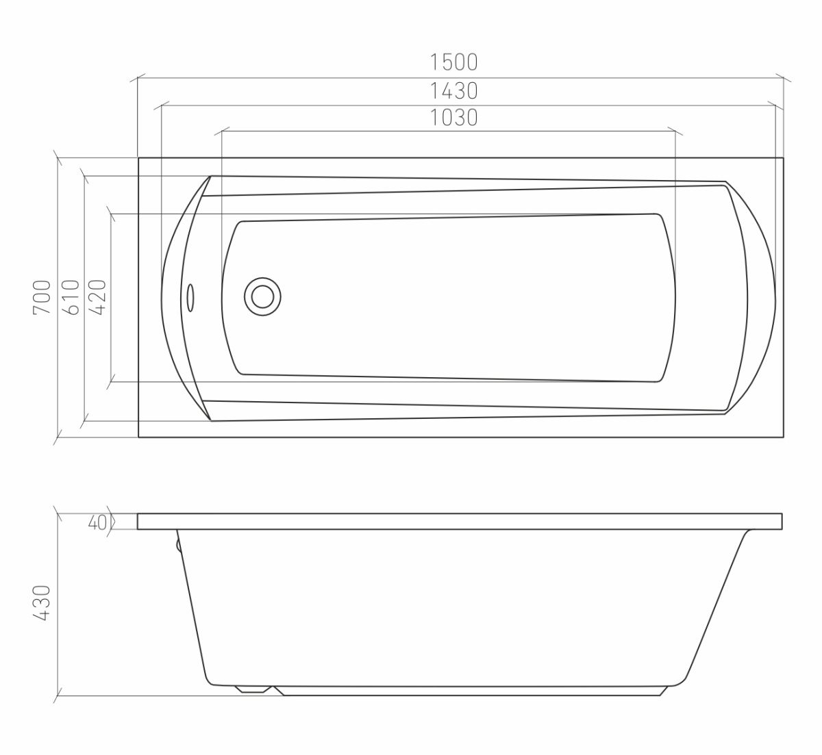 Ванна акриловая Selena 150х70 см с ножками